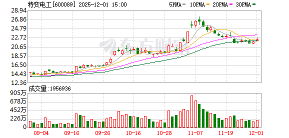 证券时报·数据宝统计显示,特变电工今日收盘价为22.23元,上涨1.97%,日换手率为3.87%,成交额为43.58亿元,全天主力资金净流入2.52亿元,近5日该股累计上涨3.30%,近5日资金合计净流出1.95亿元。